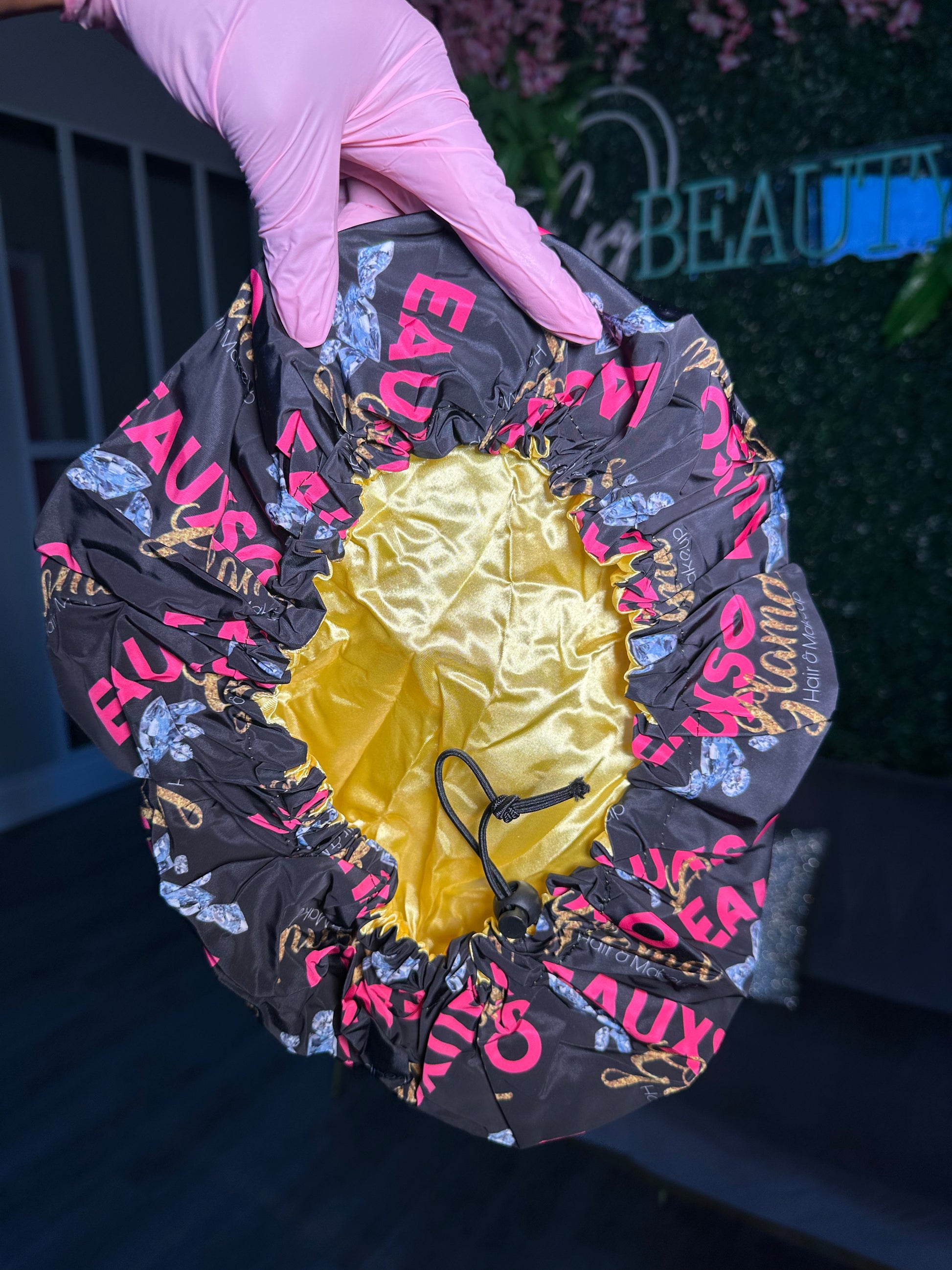 Introducing Our New Comfort Elastic Lace Meltband and Satin Lined Shower Cap Set . This set will allow your beautiful installs to last way longer . The Shower cap features an adjustable drawstring & the elastic band has a velour ear cut out to give our customers a comfortable pain free experience . Great to wear when working out , taking showers , during facial routines and more .